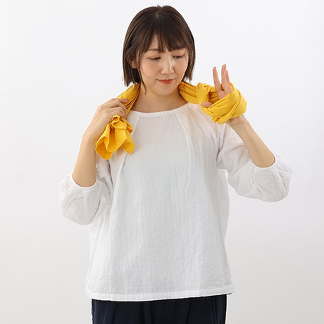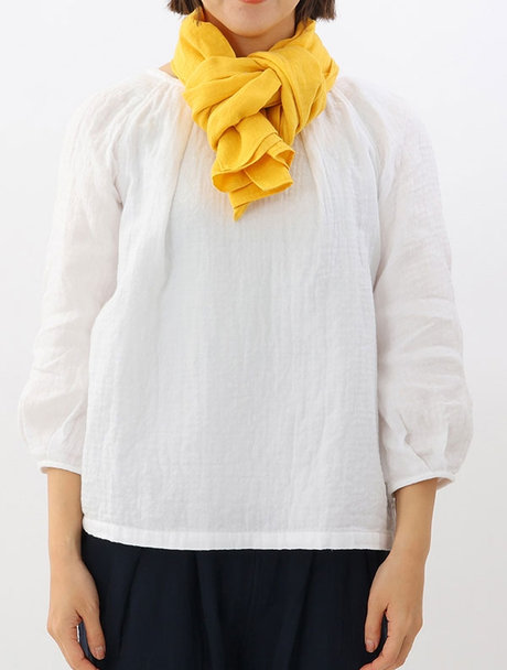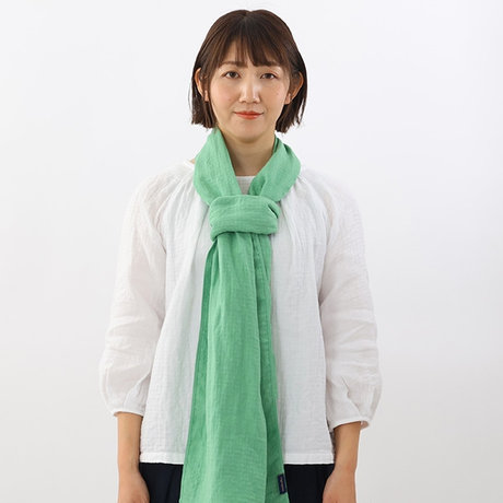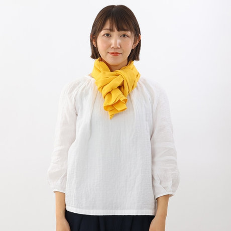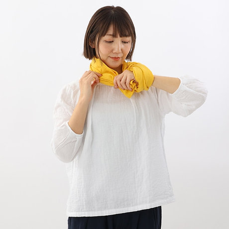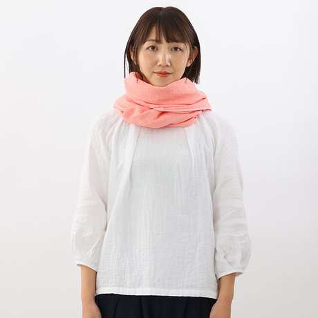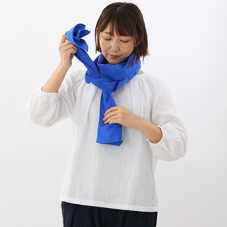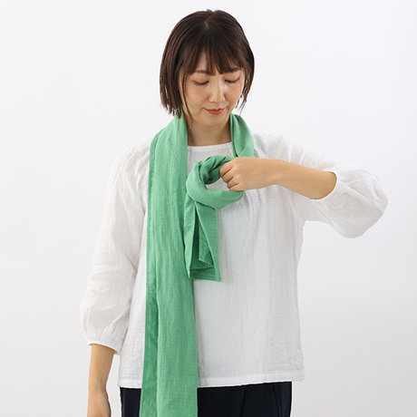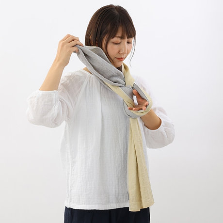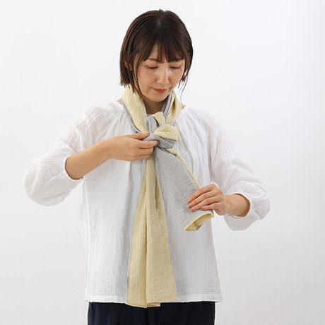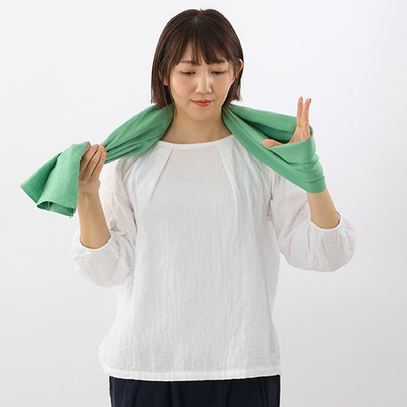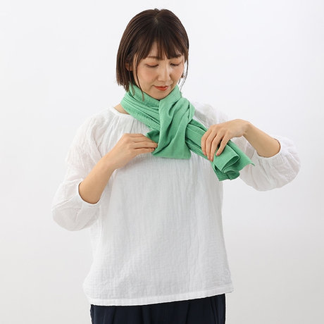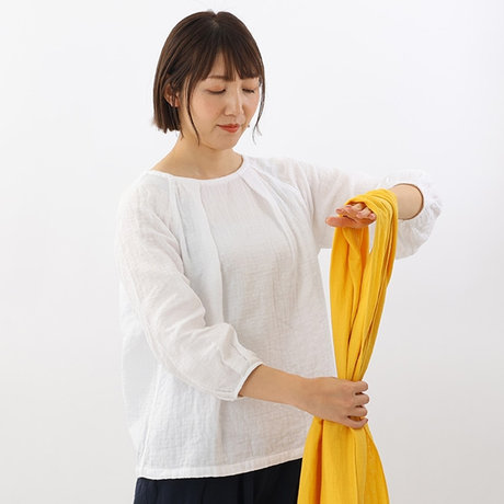 そのまま少しゆるめに首にかけ、左側の折り目部分を輪にします。
