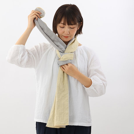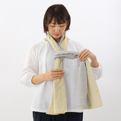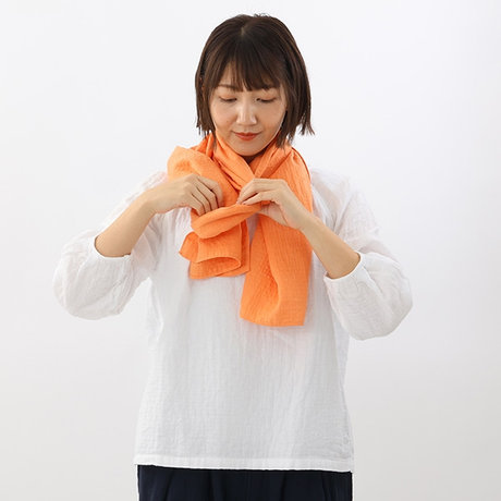 マフラーの横幅を好みの太さに折りたたみます。
