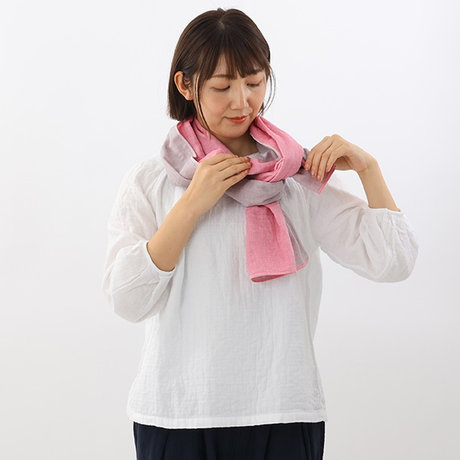 長さが左右対称になるように首に1周巻きつけます。