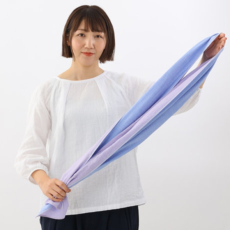 左右が同じ長さになるように首にかけます。