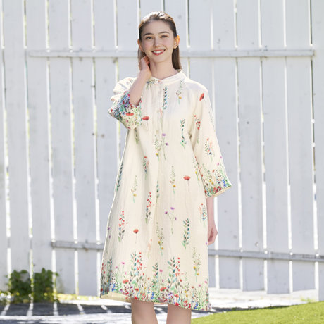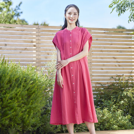 クレープガーゼレディスタック前開ワンピース