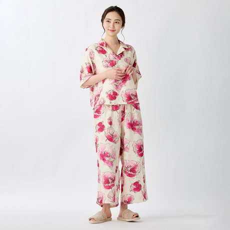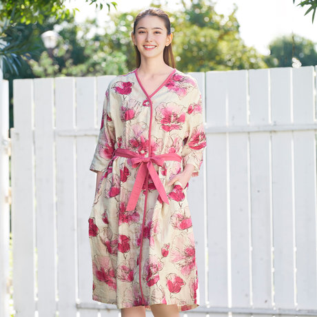 マシュマロガーゼピンクフラワーレディスルームウェア