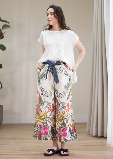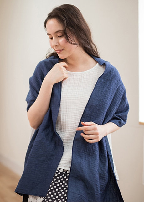 蒸し暑い日はトップスをクレープガーゼに変えるだけで、涼しく快適に過ごせます。