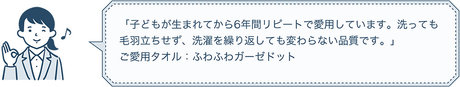 肌当たりの優しい羽毛のような柔らかさと乾きやすさも使いやすさのポイントです。![同僚/ご近所さんへの贈り物2 - マシュマロガーゼ&パイルカラースタイ]()