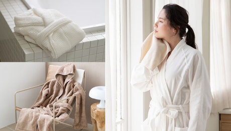お風呂上りには、湯冷め防止にバスローブをさっと羽織りましょう。