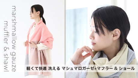 差し色としてマシュマロガーゼマフラーをプラスすれば、エアコンの効いた室内や寒暖差のある日も快適に過ごせます。