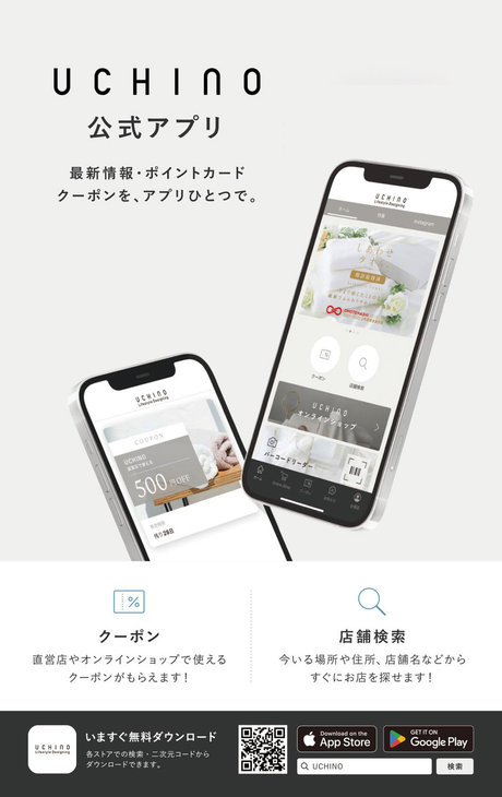 そして、同時にUCHINO公式アプリが登場しました。