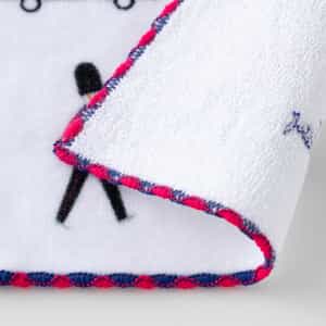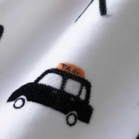 ロンドンをイメージさせるアイコンが並んだキャッチーなデザインです。 パイルの表面をカットするシャーリング加工で仕上げた、なめらかな肌触りが特徴です。
