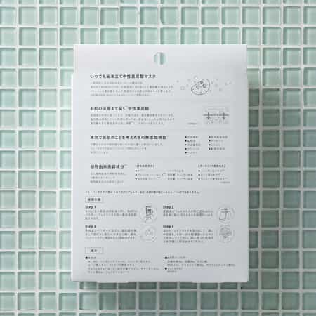 合成香料、アルコール、グリセリン、鉱物油、パラベン、シリコン、合成着色料、紫外線吸収剤、動物性原料、すべて無添加。フェイスマスクはピュアコットン100%のシートを使用しています。