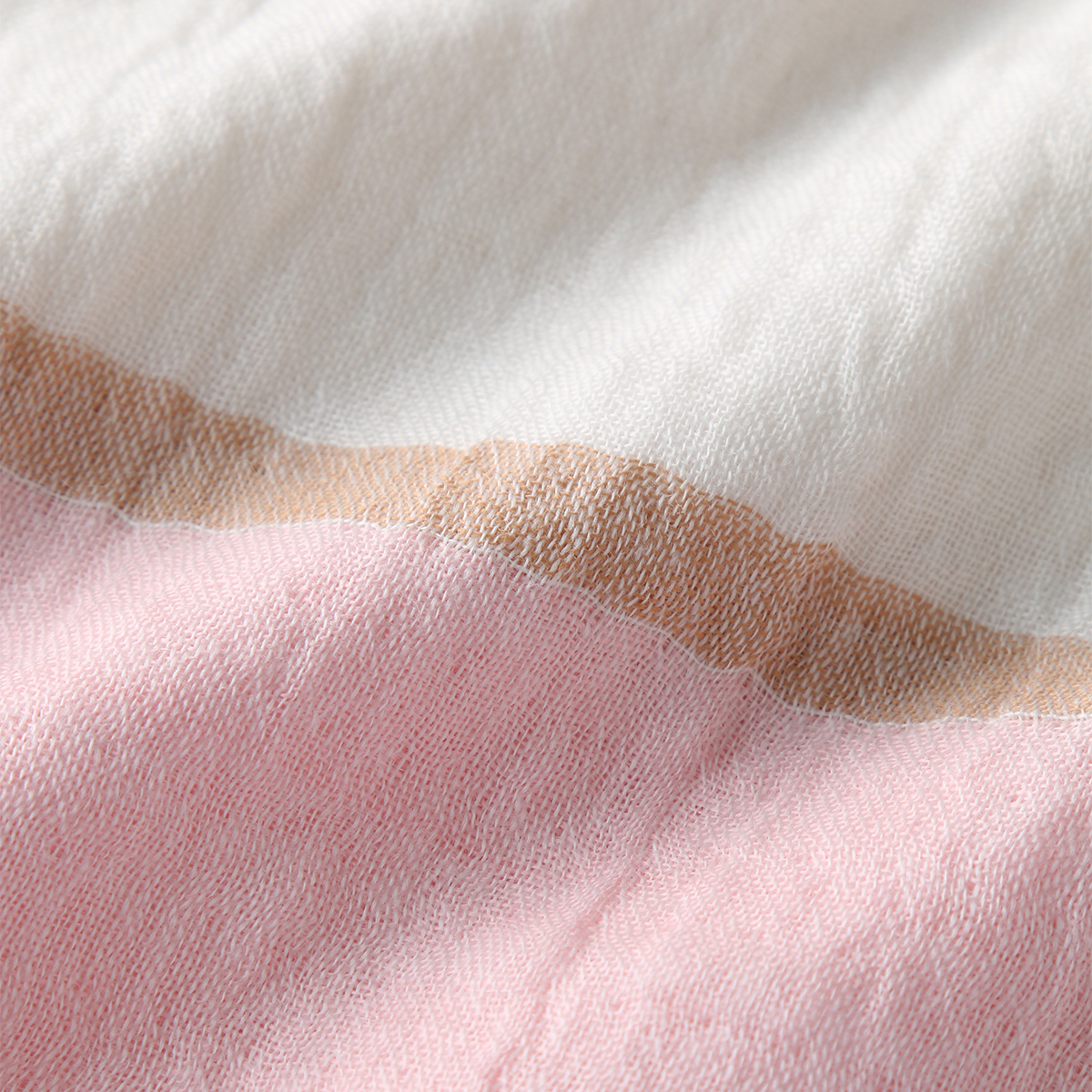 マシュマロガーゼスローは既に3 枚持っていますが 明るい色が欲しくてピンクを購入しました 写真では茶色に写っている部分は実際は柔らかな 薄い ベージュで上品なブルーグレーがポイントになっていて ステキでした ふわふわサラサラホンワカ扱いやすく 嵩張らず 良いです!