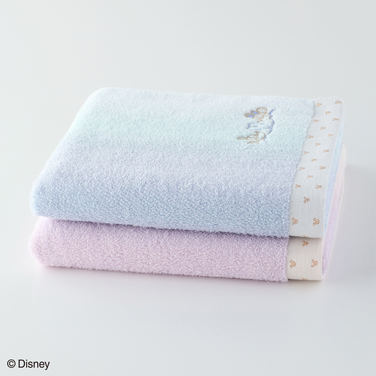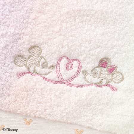 「ミッキー&ミニー」のなかよしペアを、さりげないワンポイント刺繍であしらいました。