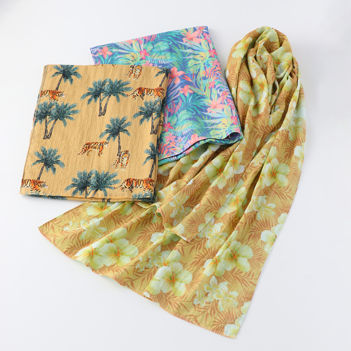 きれいなグリーンとイエローの花柄 肌触りも良く気に入りました。