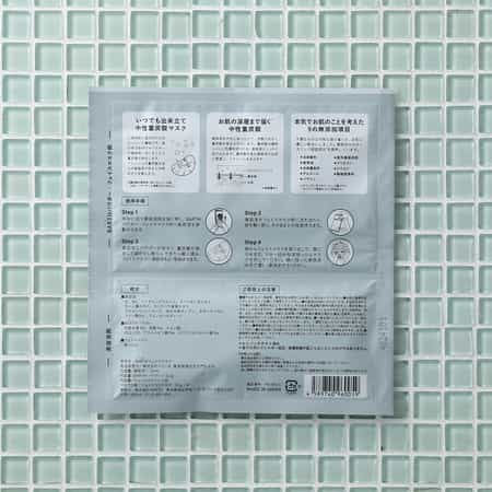 合成香料、アルコール、グリセリン、鉱物油、パラベン、シリコン、合成着色料、紫外線吸収剤、動物性原料、すべて無添加。フェイスマスクはピュアコットン100%のシートを使用しています。