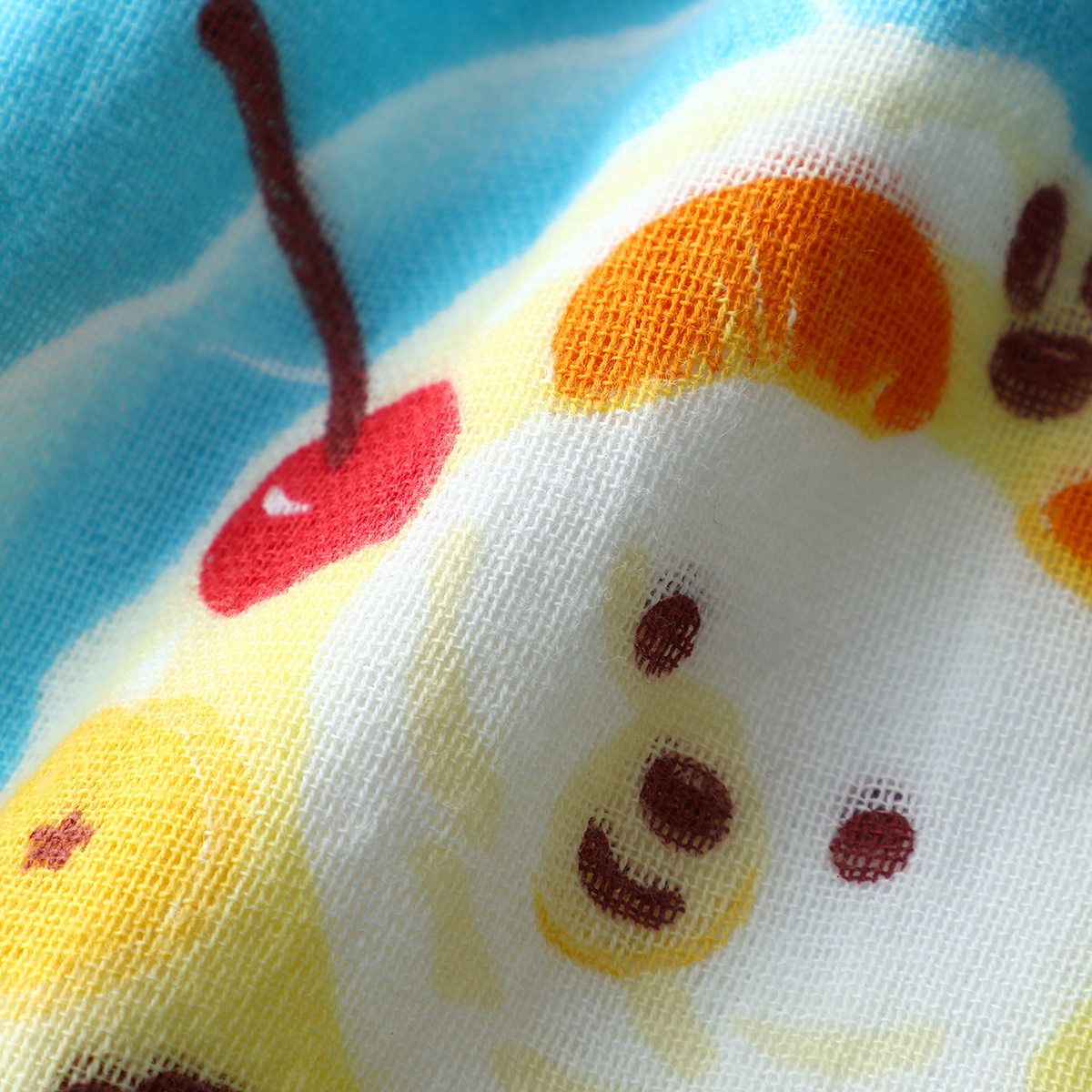 手ぬぐいだと少し薄すぎ、フェイスタオルだとしっかりしすぎて首元がもごつきがちなのが悩みでしたが、程よい薄さとふわっと感、そして可愛らしいデザインが気に入っています。