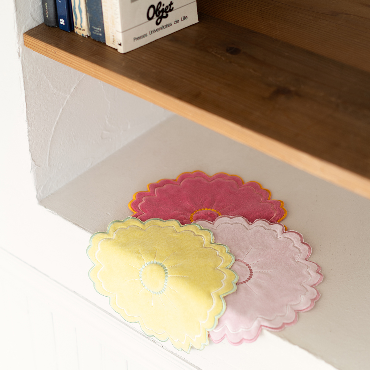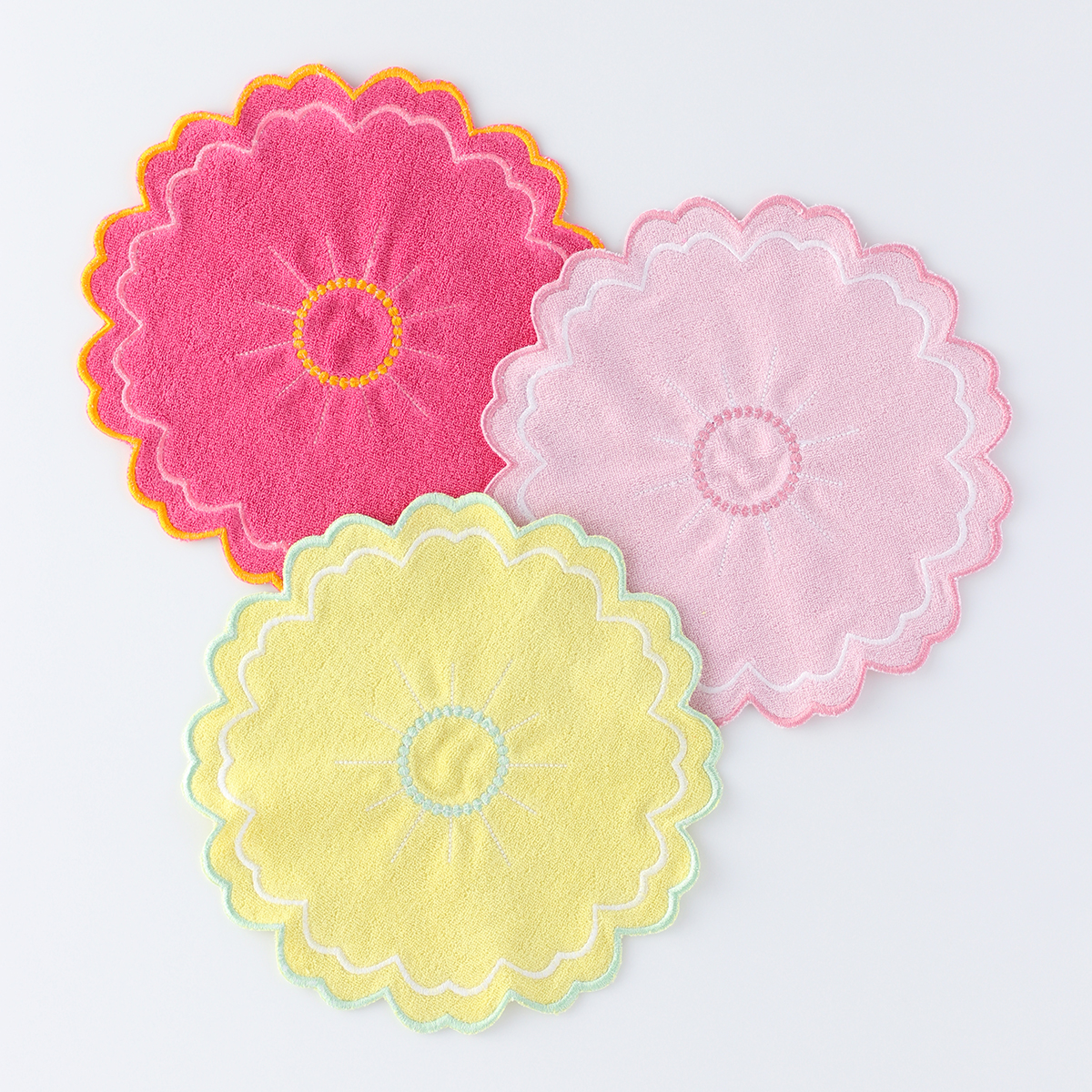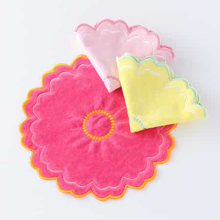 花瓶敷きに3色購入しました。お花に負けず華やかで、大満足です。洗えると思うととっても安心です。