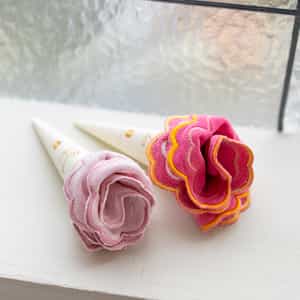 可愛い色と形です。お花を活けたときの花瓶敷にするよていです。黄色のほか赤、ピンクを購入しました。