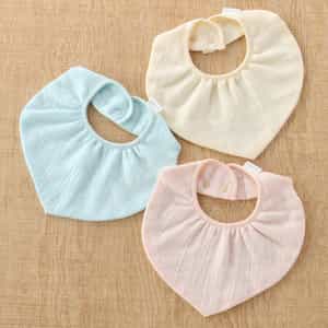 極細の撚りの少ない糸を独自の技術で織り上げた、驚くほどやさしい肌触りのマシュマロガーゼ®を使用しています。ガーゼ地なので吸水性に優れており、リバーシブルでお使いただけます。おすわりが出来るようになった赤ちゃんに付けやすいよう、ボタンが後ろにあるタイプです。(調節可能) <特許・認証・受賞> ・おもてなしセレクション金賞受賞(2015年~2024年 10年連続) ・百貨店バイヤーズ賞リビングベストセラー賞受賞(2015年度~2024年度 10年連続受賞) ・マシュマロガーゼ®は日本アトピー協会の推薦品です ・特許取得済 ・Oeco-texStandard100 クラス1認証商品