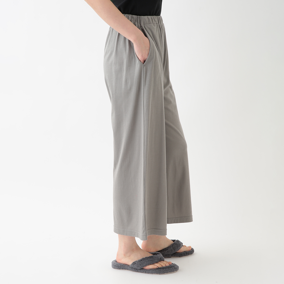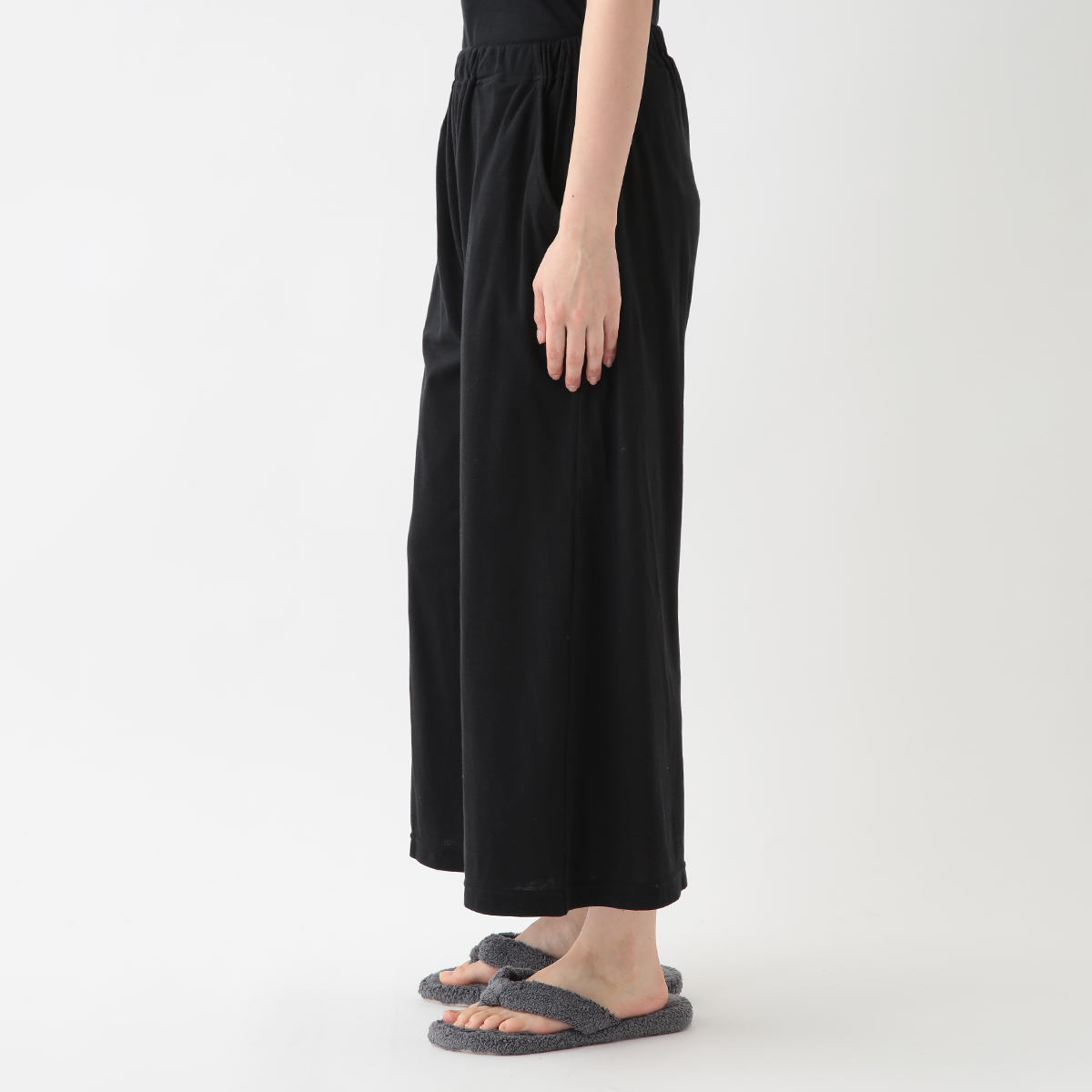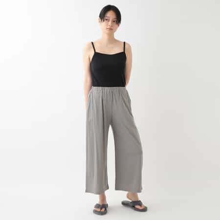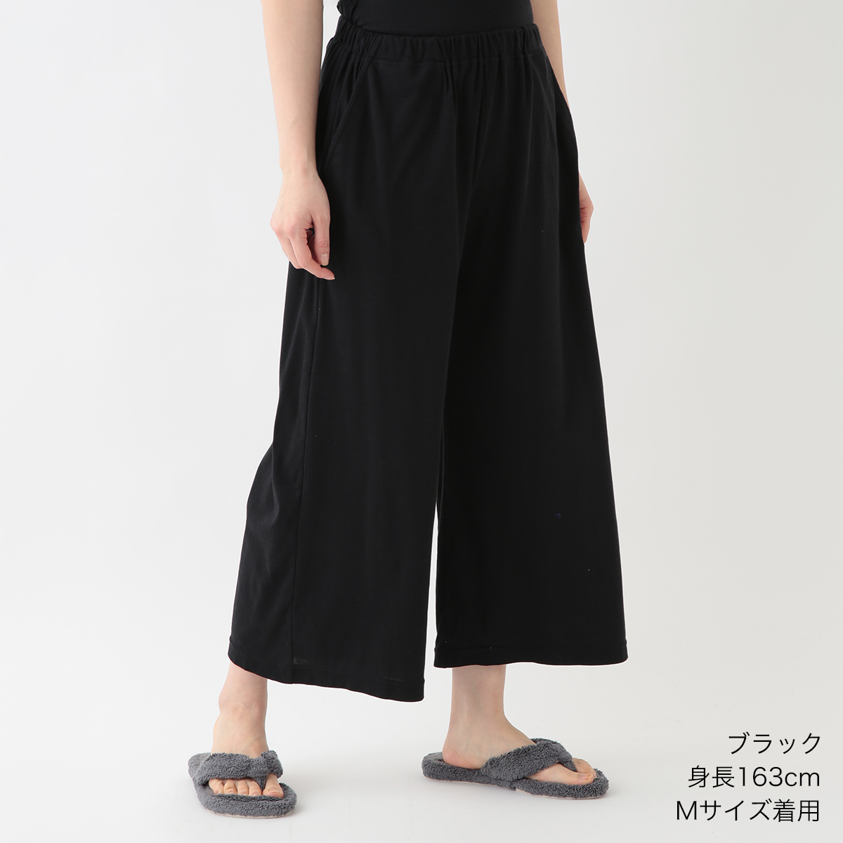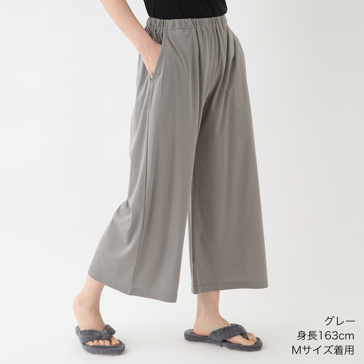 身長160でくるぶしが見える長さです。ストンと落ちる生地でスッキリ見えます。