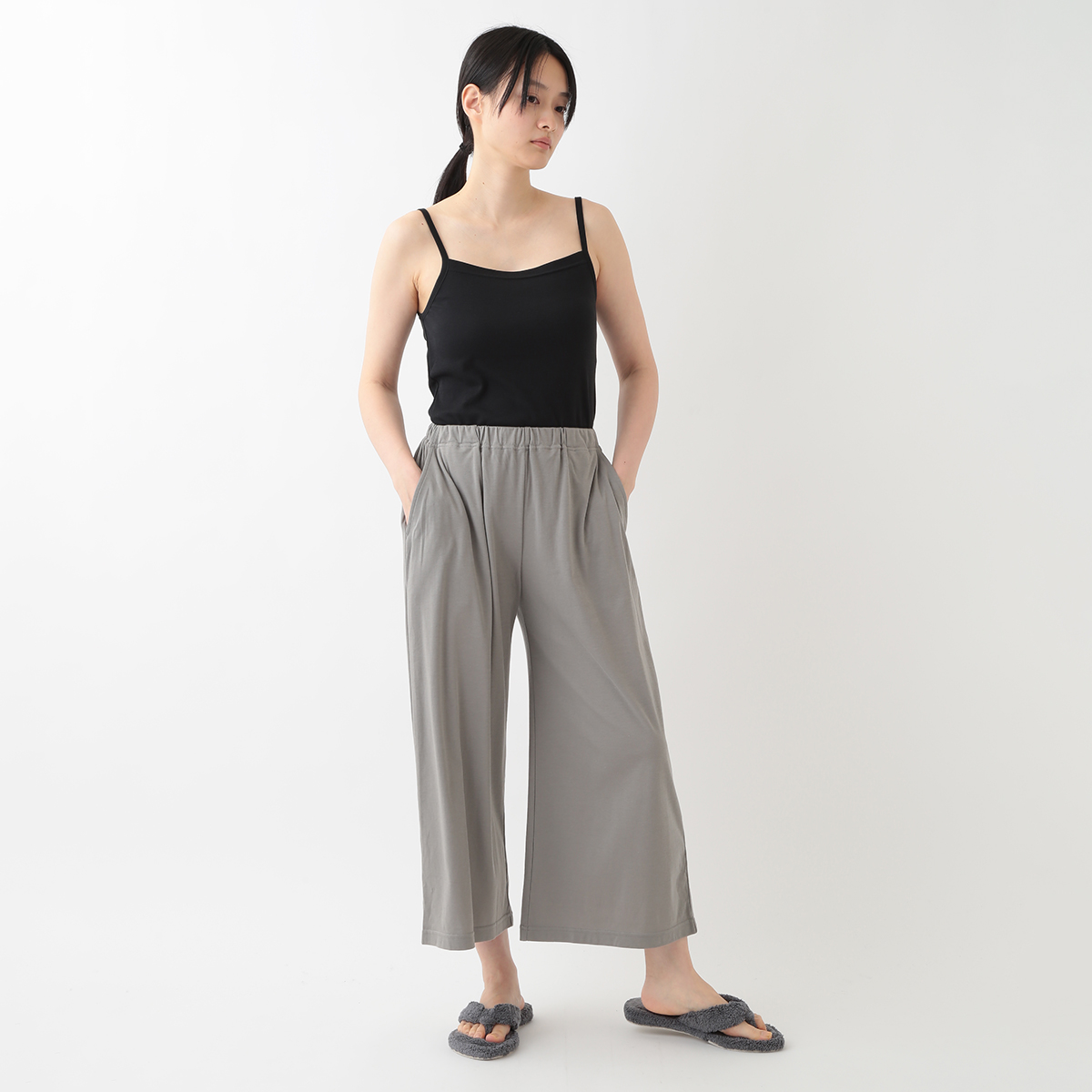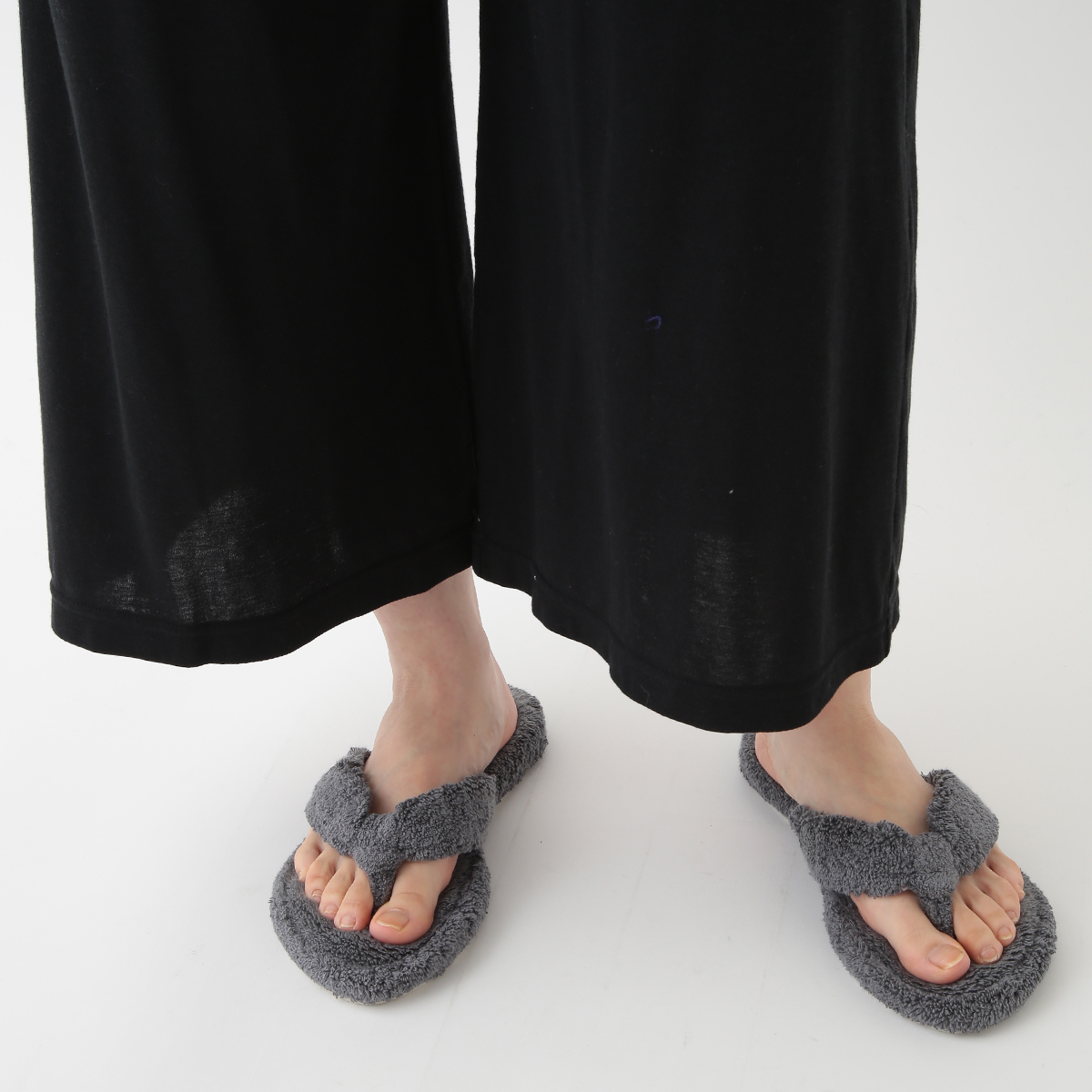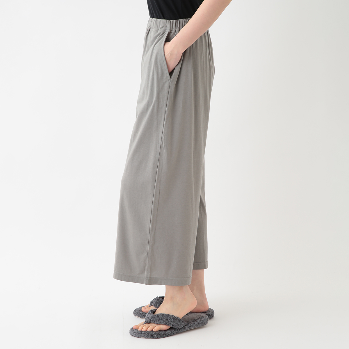 身長160でくるぶしが見える長さです。ストンと落ちる生地でスッキリ見えます。