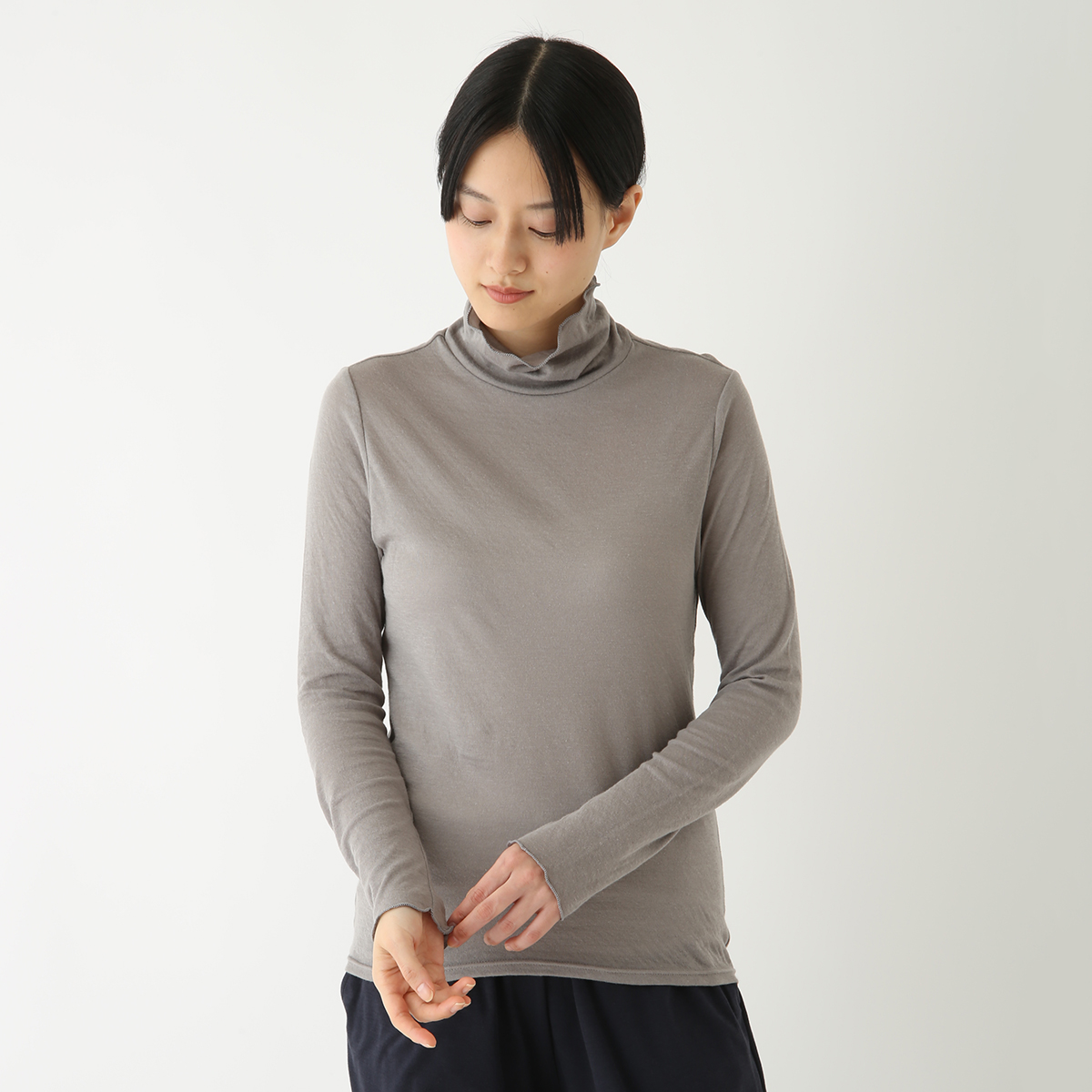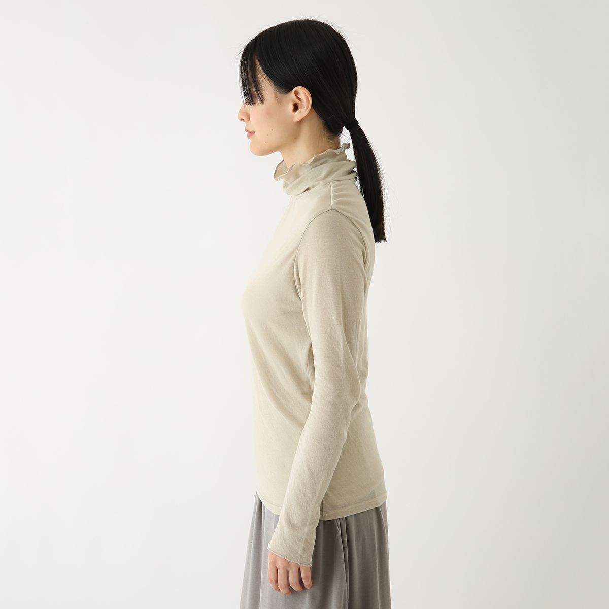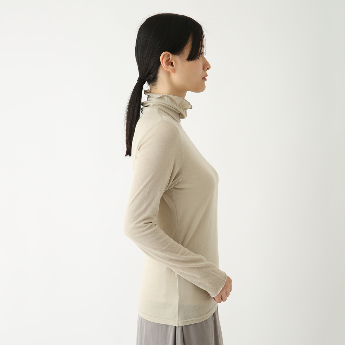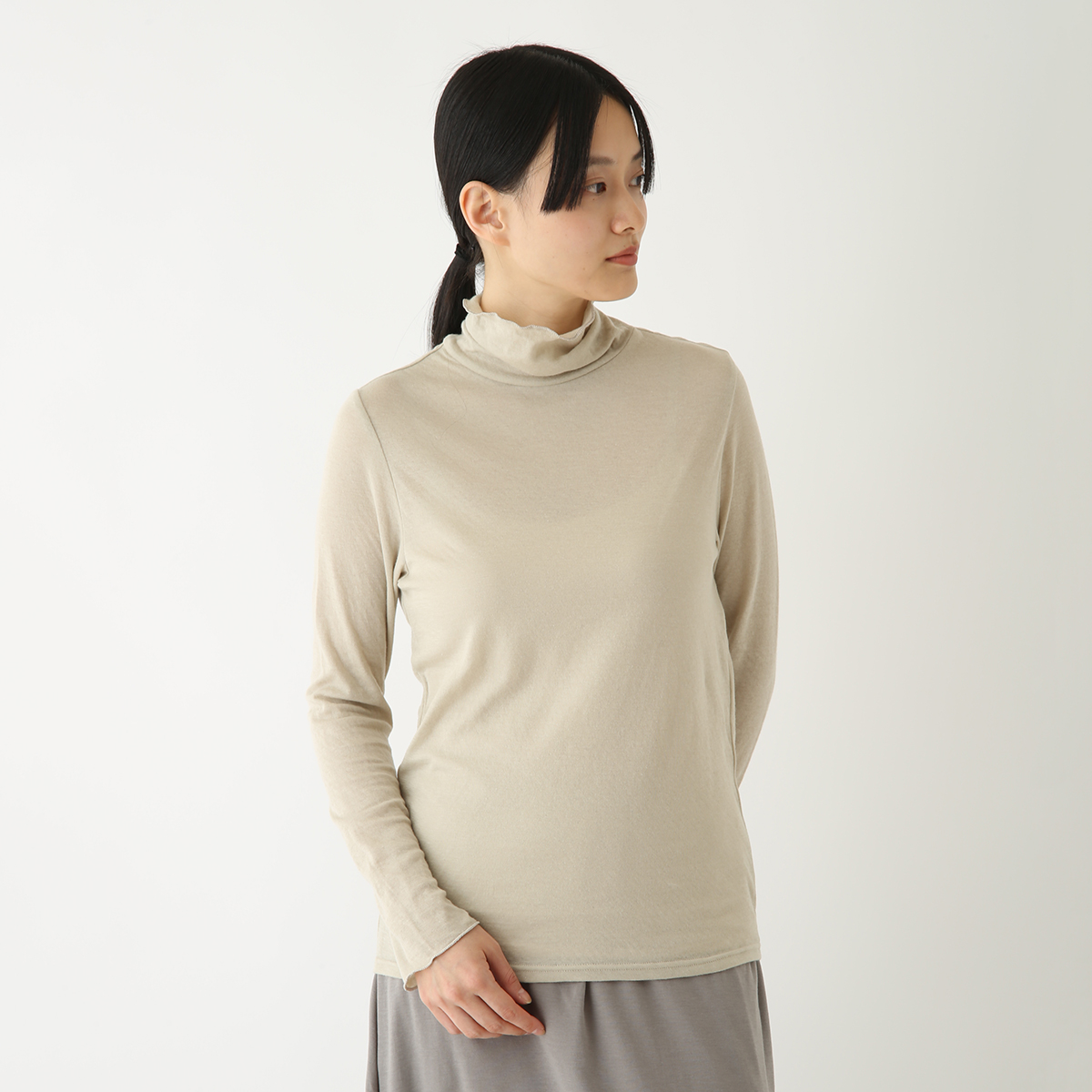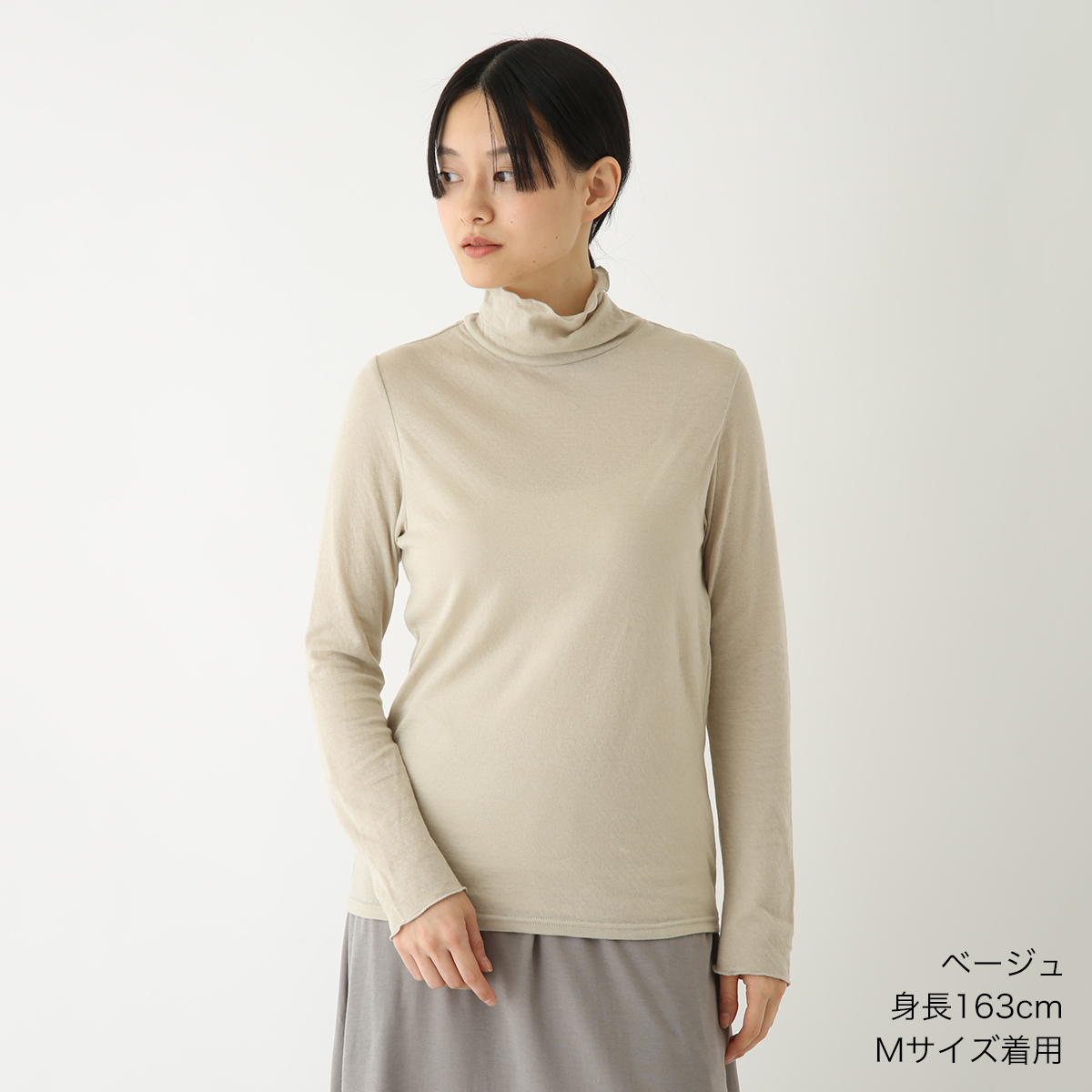 タートルネックで、肌にチクチクしないものを探していましたが、ベージュを着てみたら、着心地がよくて気に入ったので、色違いのものを買いました。体のラインが出やすいので、少し値は張りますが、カーディガンと揃えて買うと、スタイルが決まります。