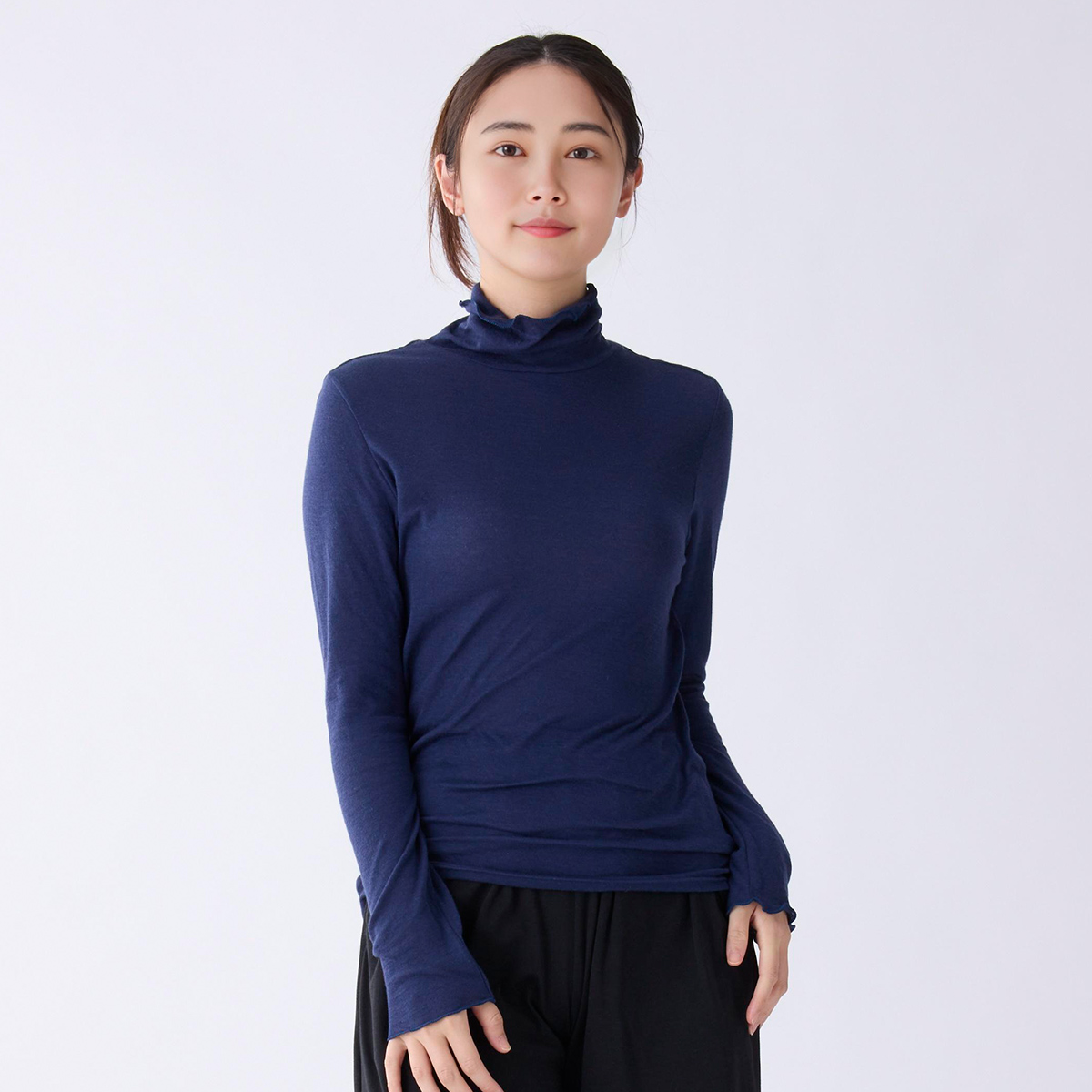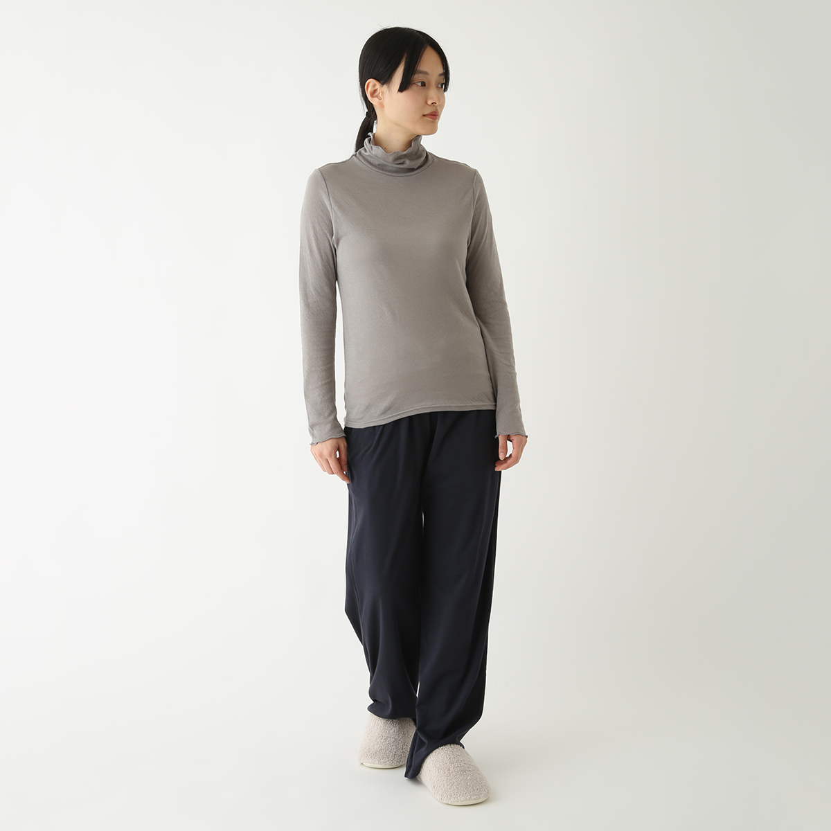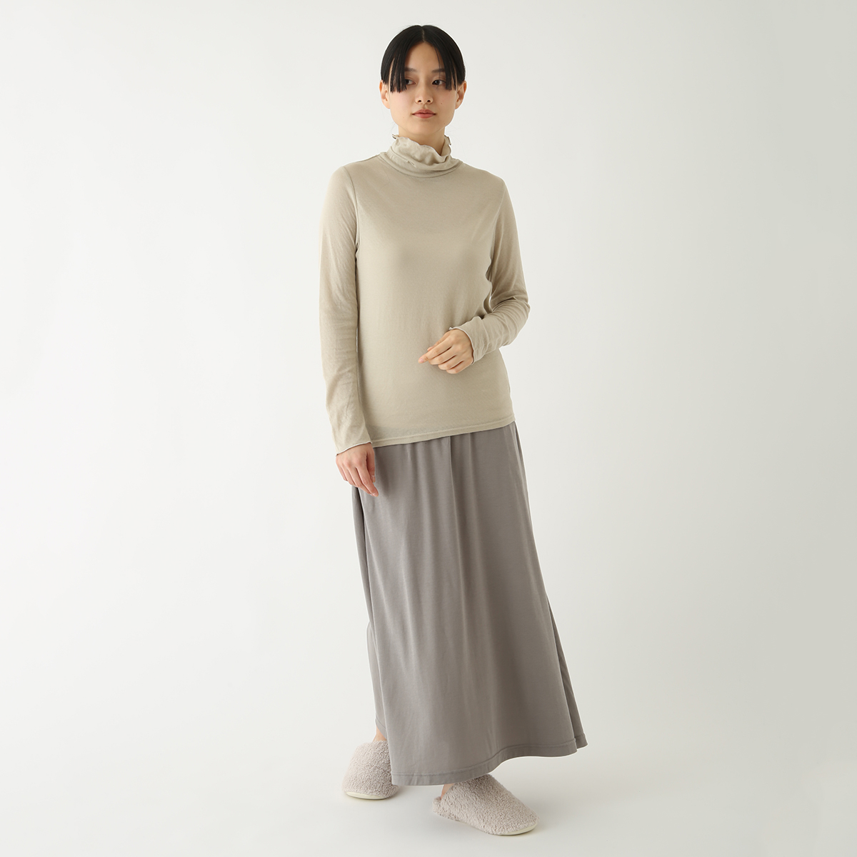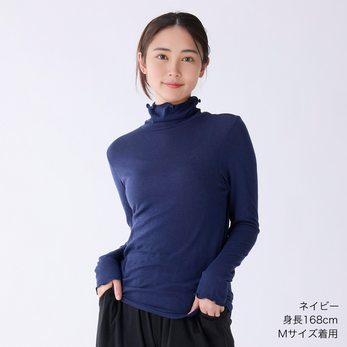 首のアトピーを隠したくてタートルネックを購入しましたが襟があまり立たず隠せなかったです。でもふわふわで肌ストレスゼロなのでたくさん使います!