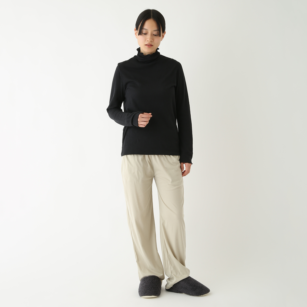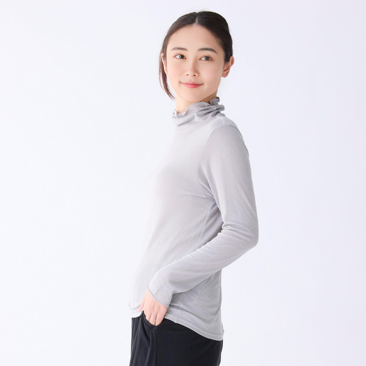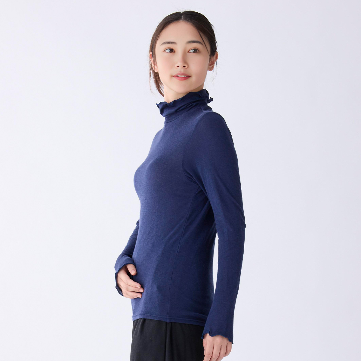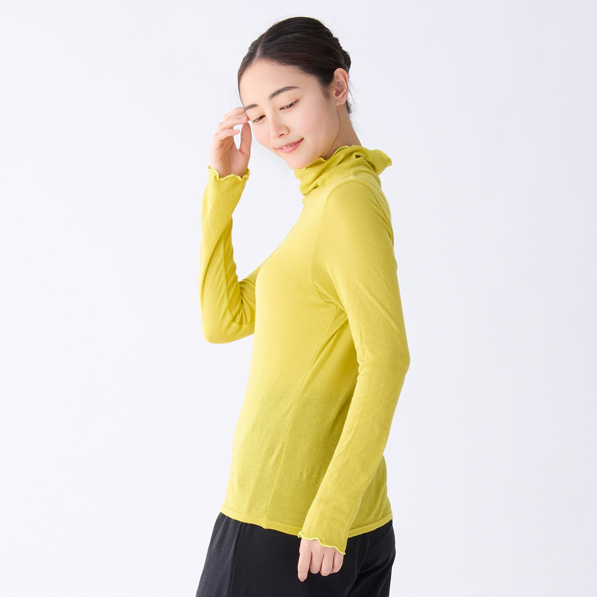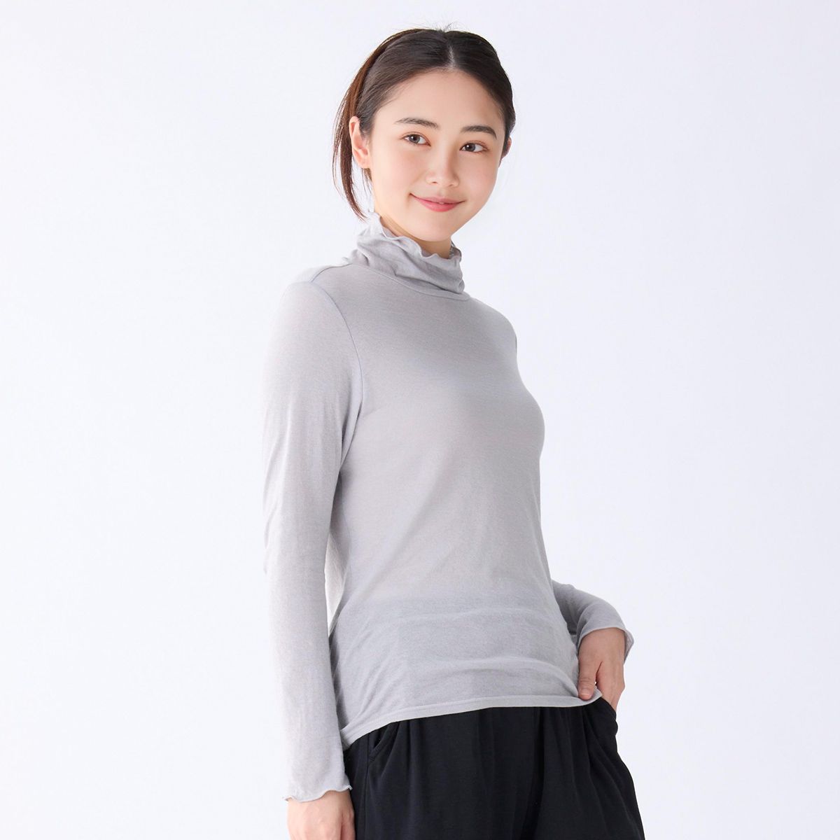 首のアトピーを隠したくてタートルネックを購入しましたが襟があまり立たず隠せなかったです。でもふわふわで肌ストレスゼロなのでたくさん使います!
