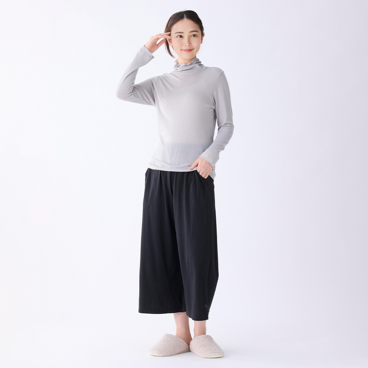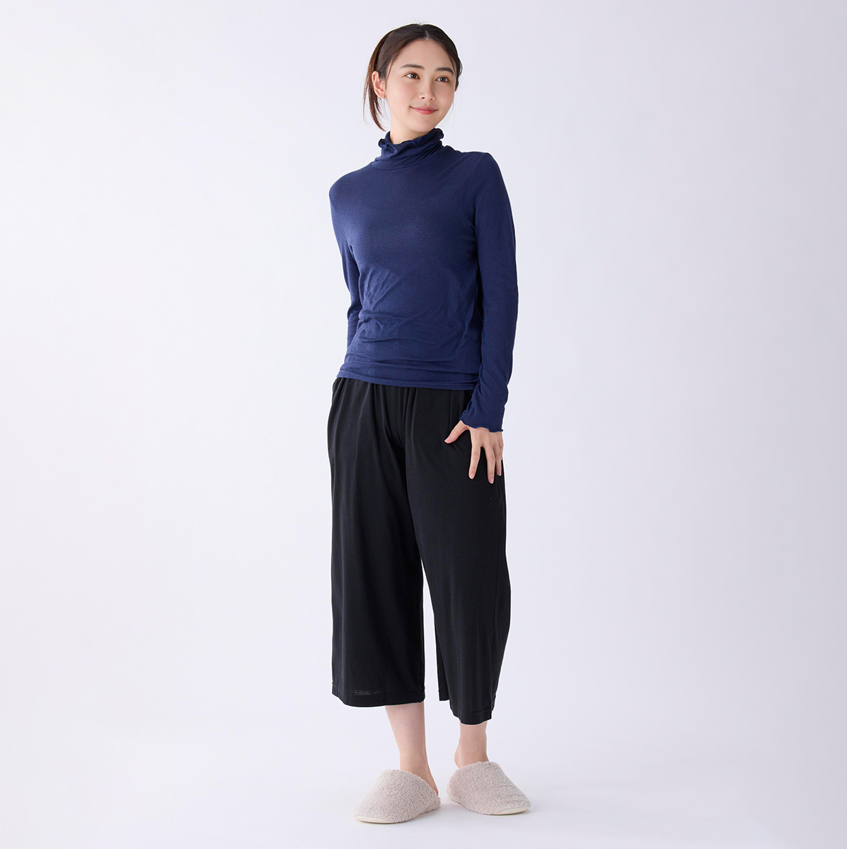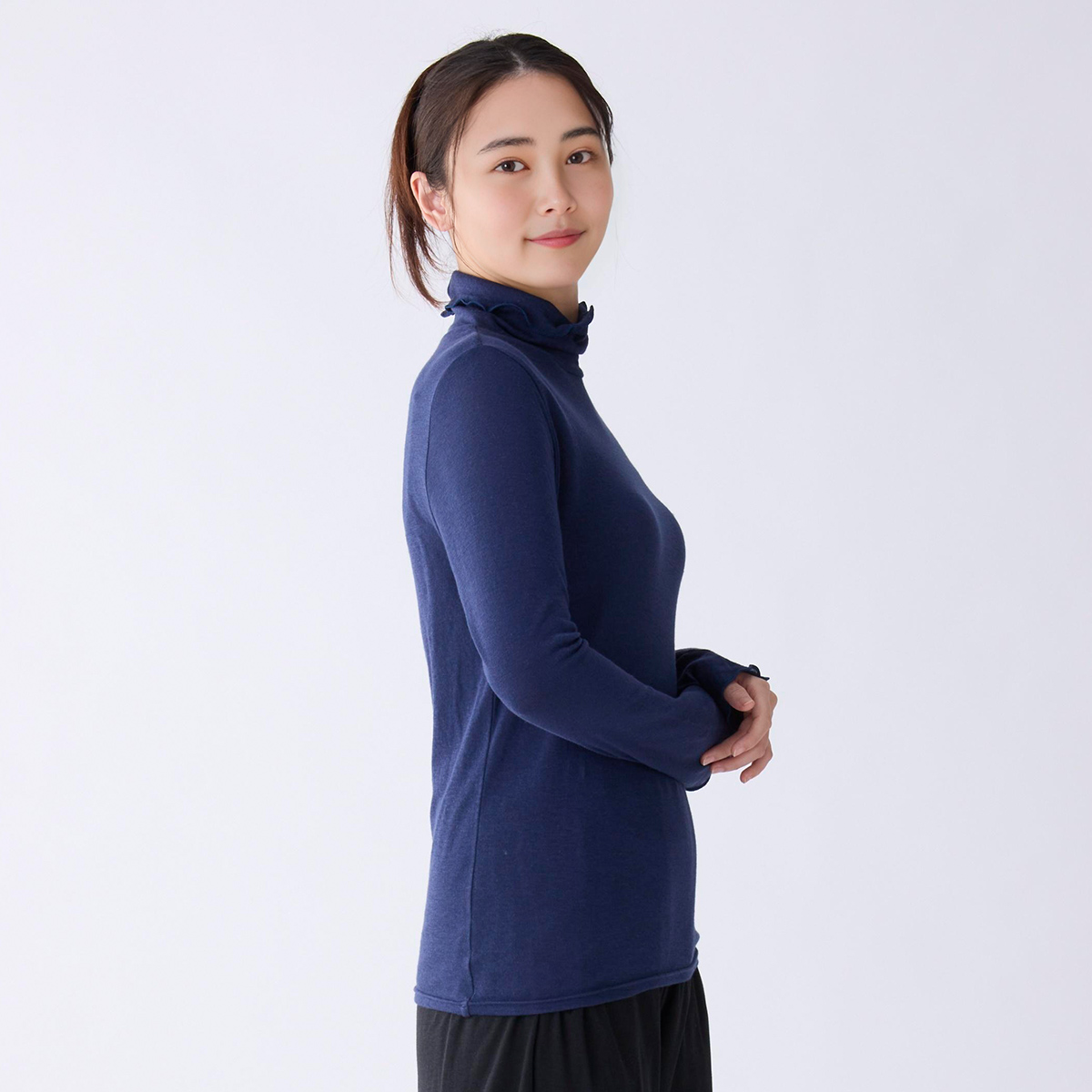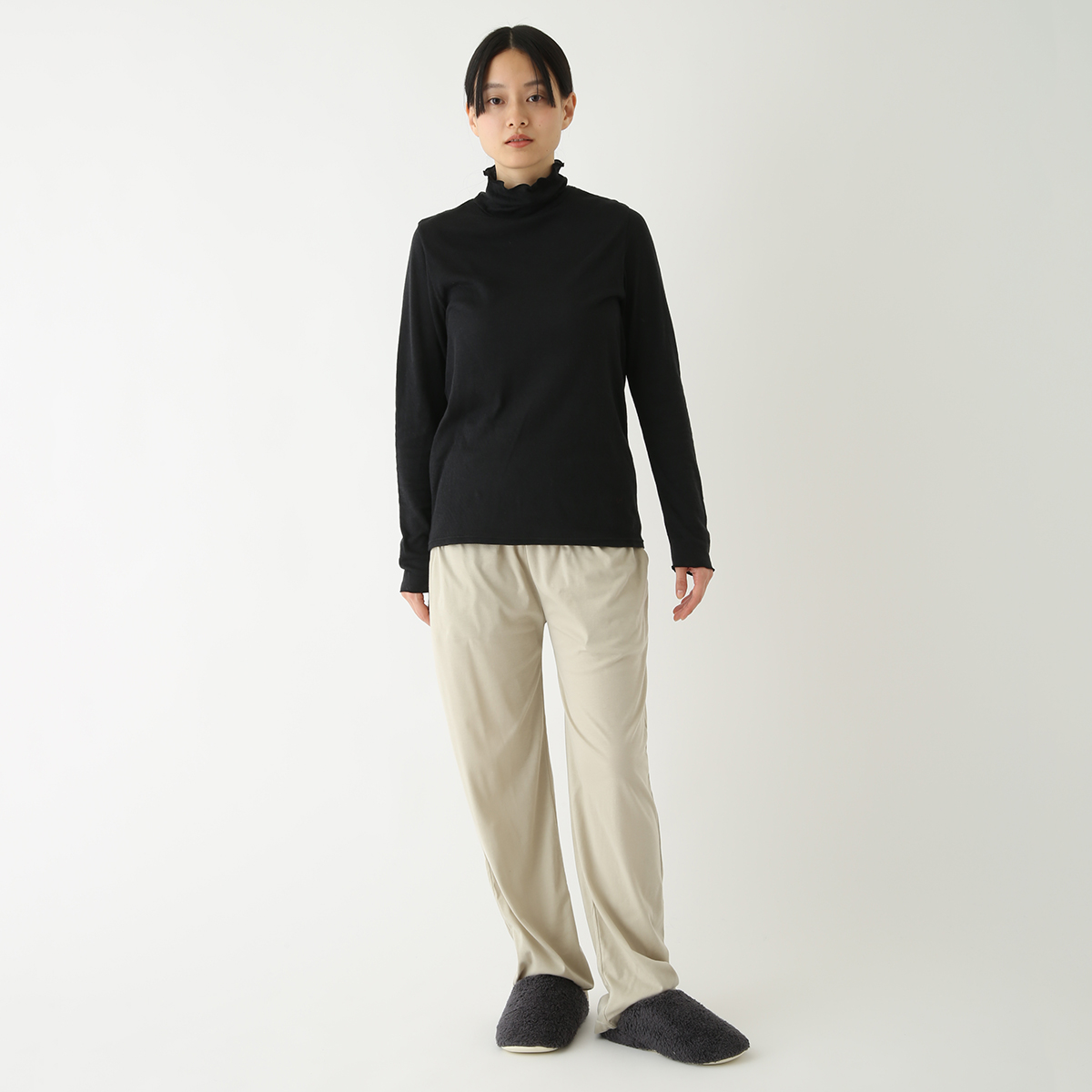 首のアトピーを隠したくてタートルネックを購入しましたが襟があまり立たず隠せなかったです。でもふわふわで肌ストレスゼロなのでたくさん使います!
