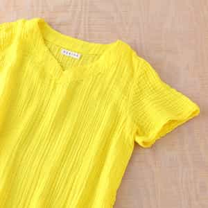 とても着心地が良いけど、少し透けるのと丈感が微妙で、もう少し濃い色を選べば良かったかなと思いました。でも夏にはピッタリのビタミンカラーと爽やかな着心地で去年の夏は大活躍しました。