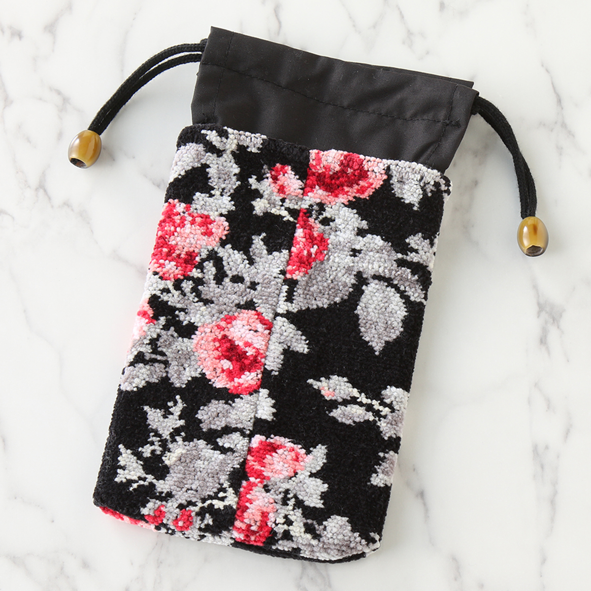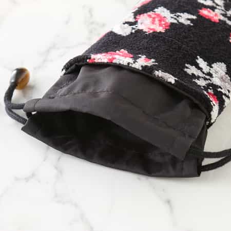 母へのプレゼントとして購入しました。黒地に赤のバラのシェニール織が上品でお洒落です。ペットボトルジャストサイズ、持ち歩きに重宝しそうです。