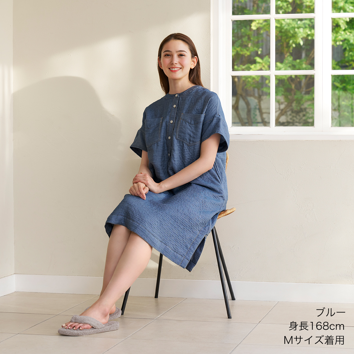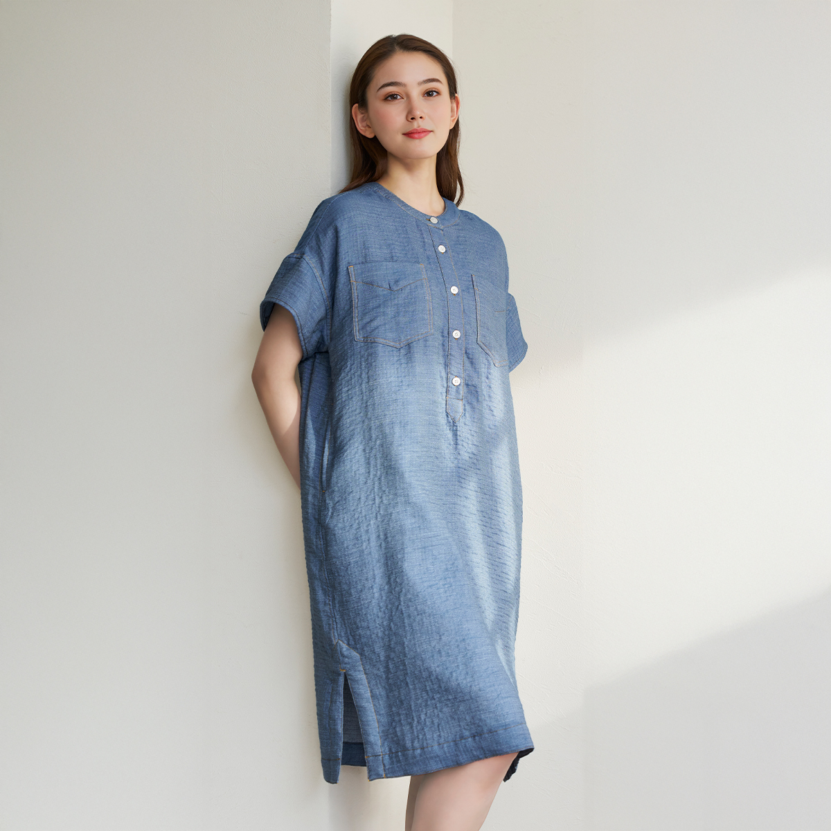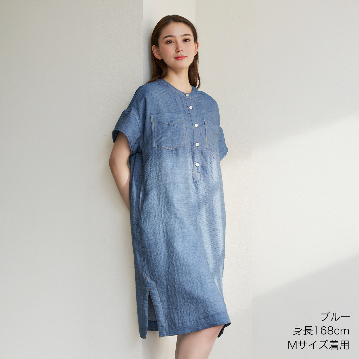 やわらかな肌触りが特長のマシュマロデニムガーゼ素材を使用したプルオーバーワンピース。