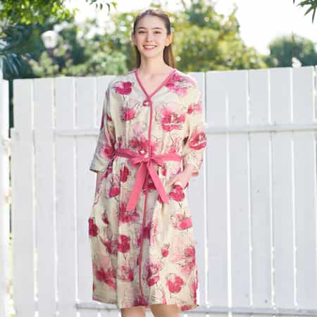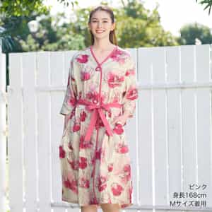 目を惹く華やかなピンクの花柄プリントが魅力のルームウェアセット。ショート丈の開襟プルオーバートップスと、バランスよく着こなせるワイドシルエットのボトムで、セットアップでも単品でも映えるデザイン。リラックス感と可憐さを両立した一着です。