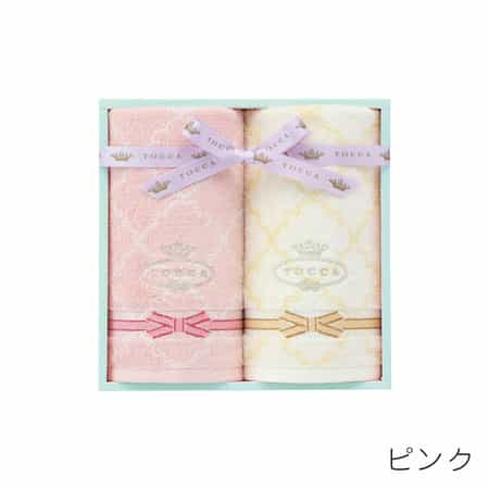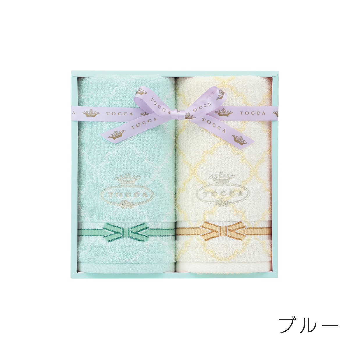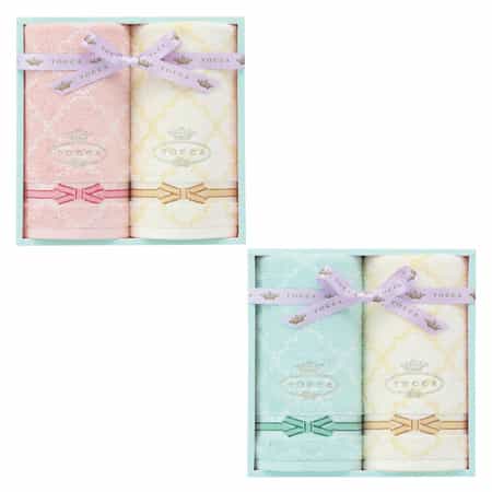 TOCCAの象徴的なパターンとリボンモチーフを組み合わせ、女性らしく上品なタオルに仕上げました。
