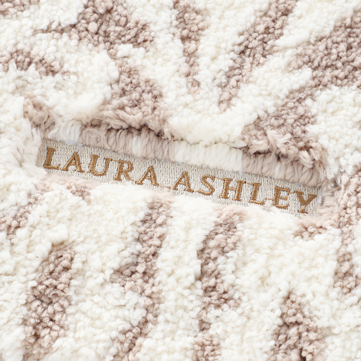 フラワーモチーフのダマスク柄にロゴ刺しゅうをあしらい、空間にさりげないアクセントを加えます。